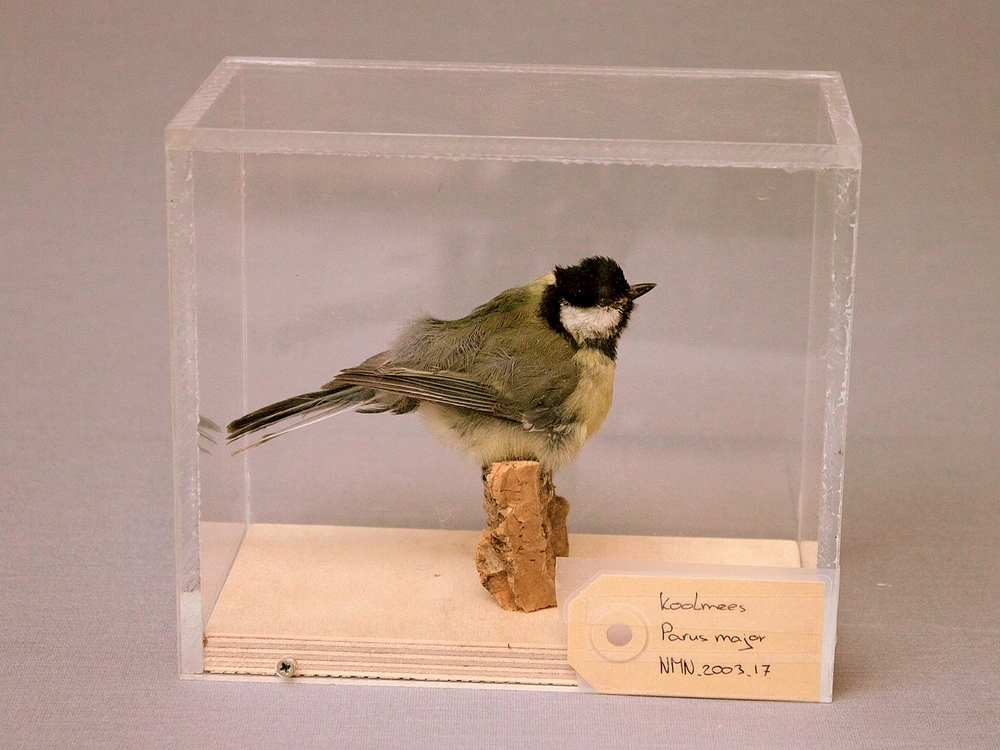Koolmees; in vitrine