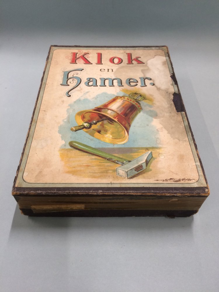 Klok- en hamerspel, bestaande uit vier kaarten, vijf...