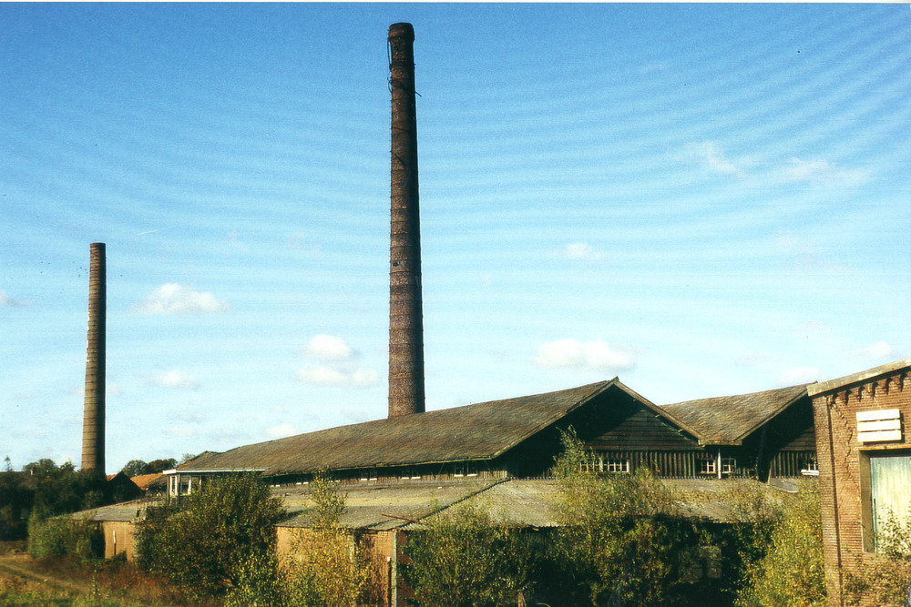 Kleurenfoto van een steenfabriek in Spijk door Ab He...