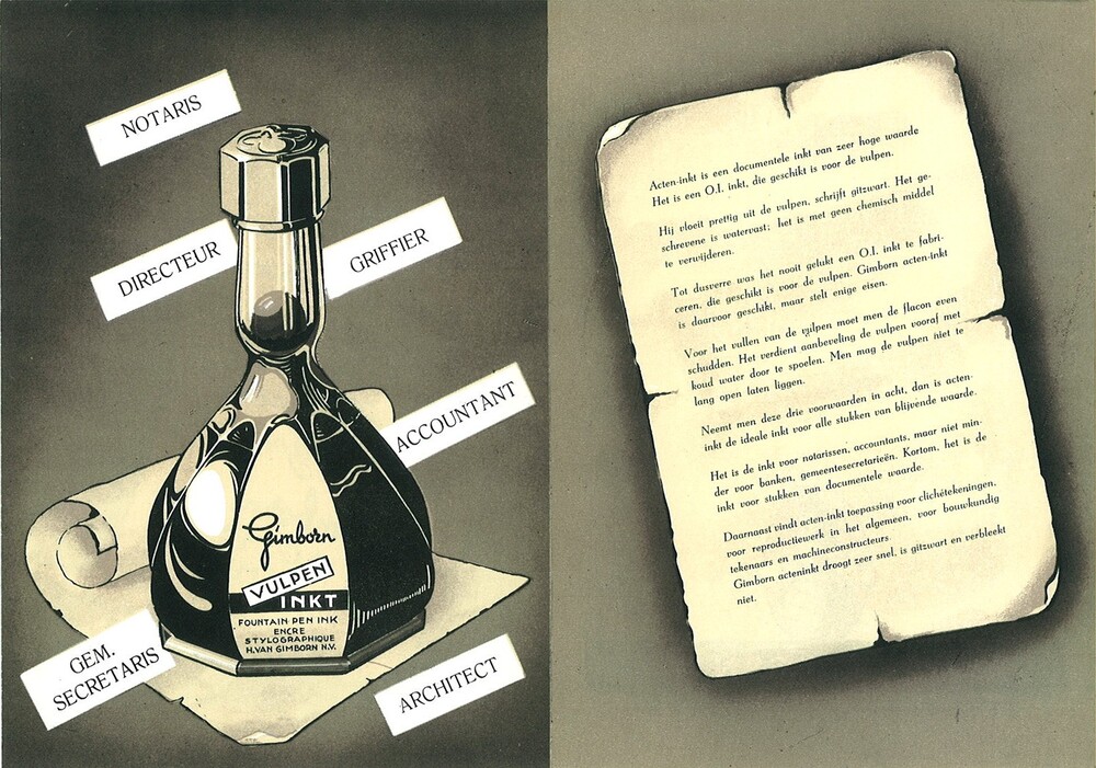 Inktflesje van glas van H. van Gimborn N.V. Zevenaar...