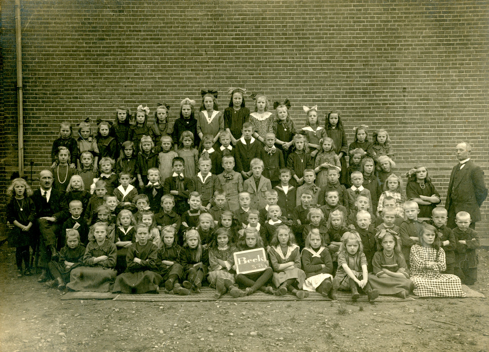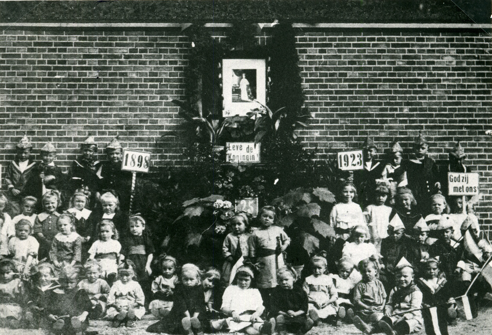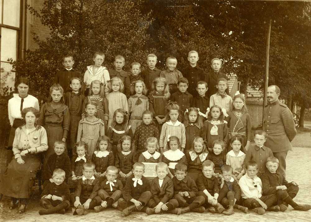 Zwart-wit foto van de leerlingen van de lagere schoo...