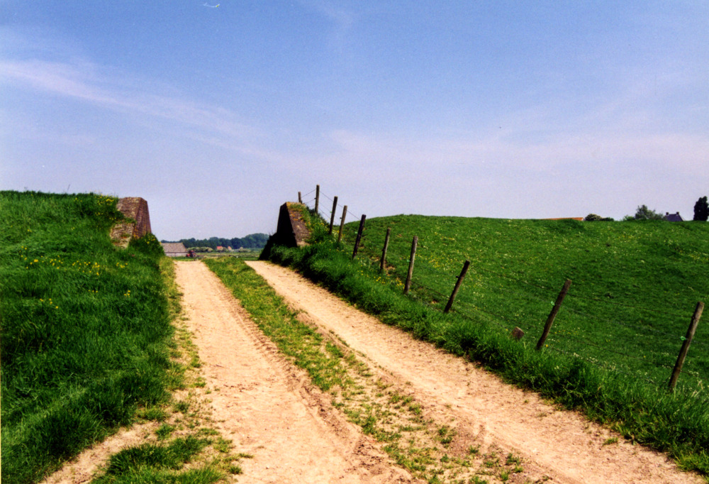 Kleurenfoto van de weg naar de veerstoep in Babberic...