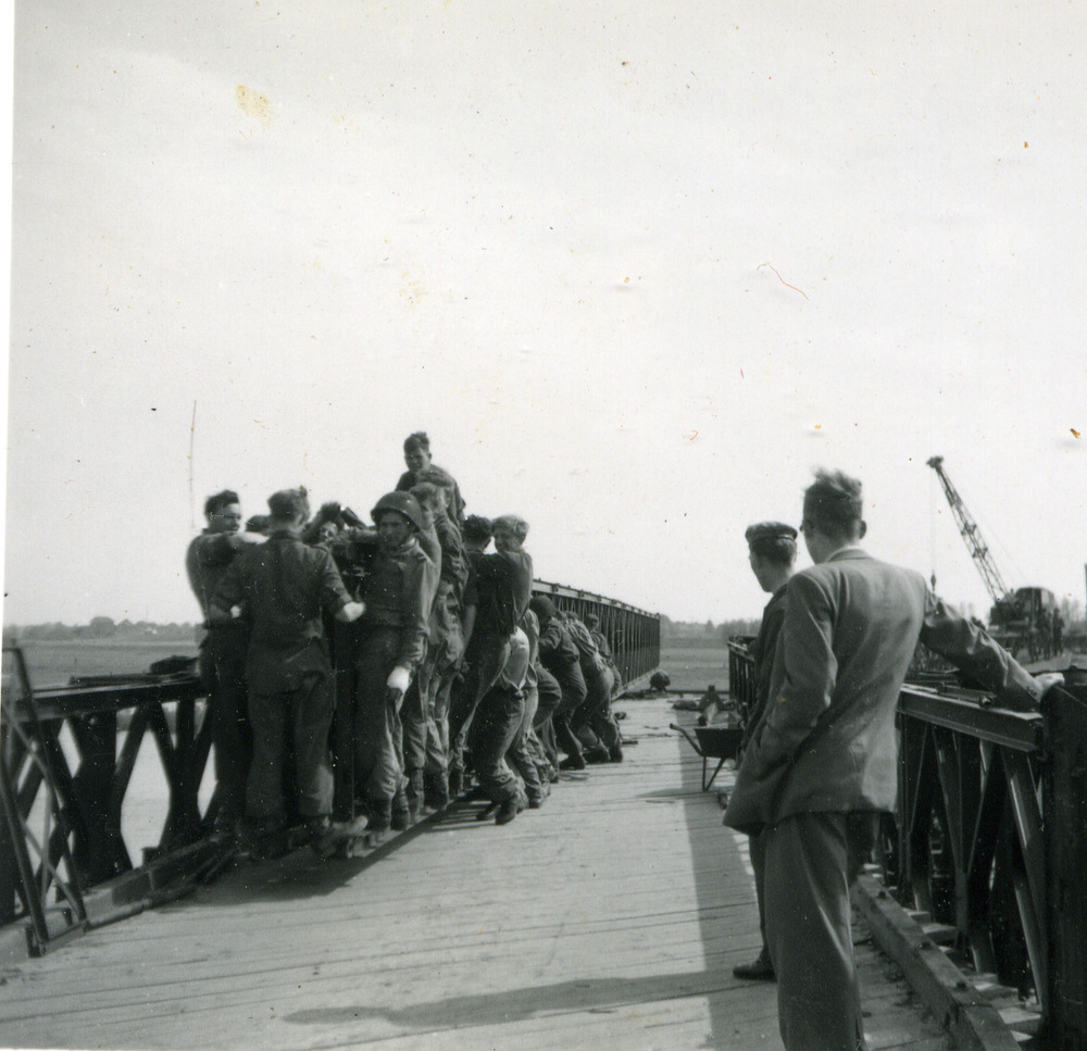 Zwart-wit foto van de Genietroep die de Baileybrug a...