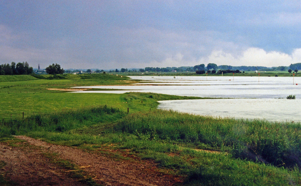 Kleurenfoto van de kribben in de rivieren te Spijk d...