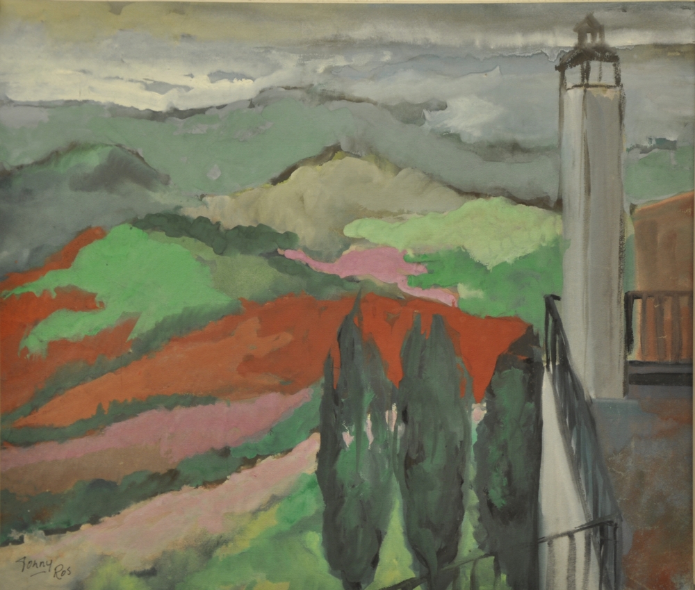 Gouache waterverf op papier van een berglandschap do...