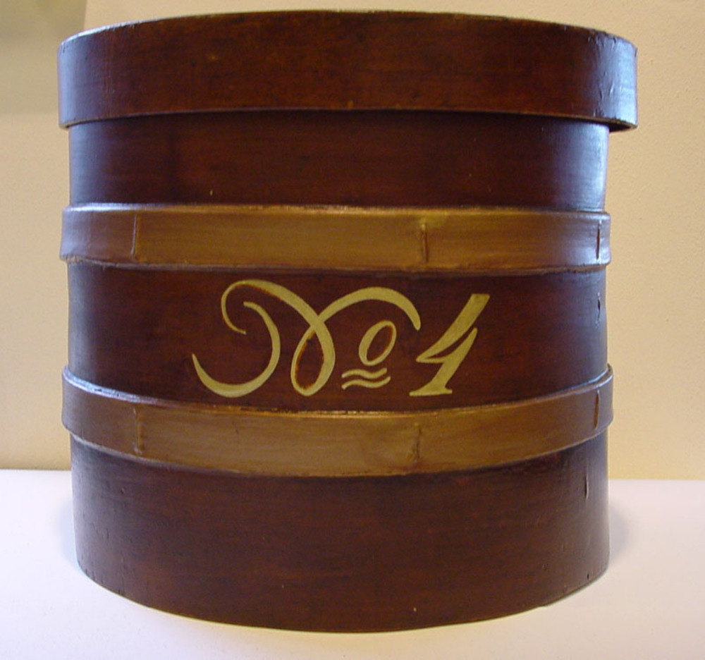 Tabaksvat met deksel van hout 'no. 4'. ca. 1920-1970