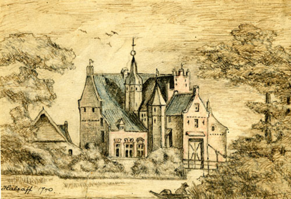 Scan van een tekening van Huis Babberich of Halsaf a...