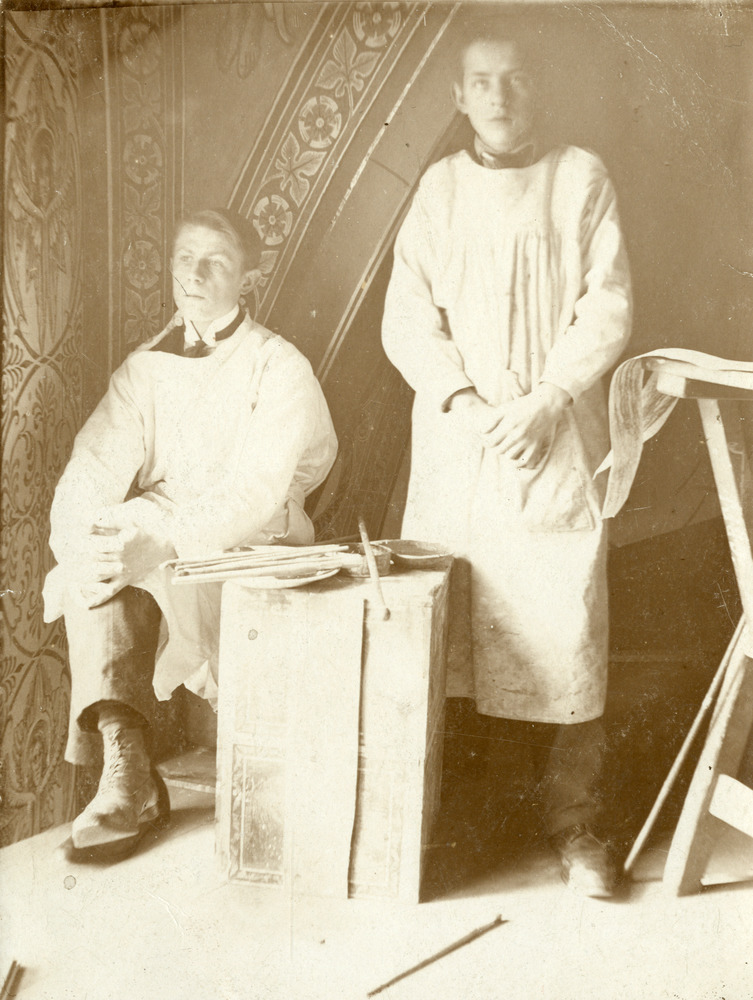 Foto van 2 kerkschilders circa 1910