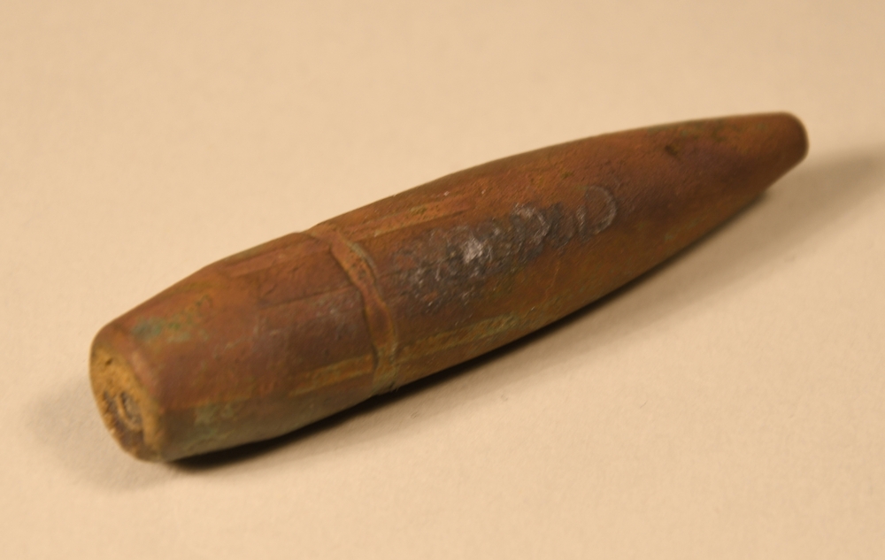 Kogel van metaal uit WO II kaliber 0.50 roodbruin va...