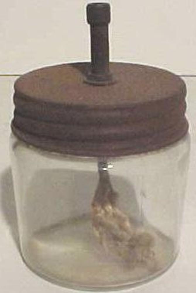 olielamp. Zelf gemaakt van jampot met schroefdeksel ...
