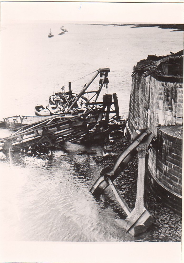 Vernielde bruggen bij Zaltbommel 1940