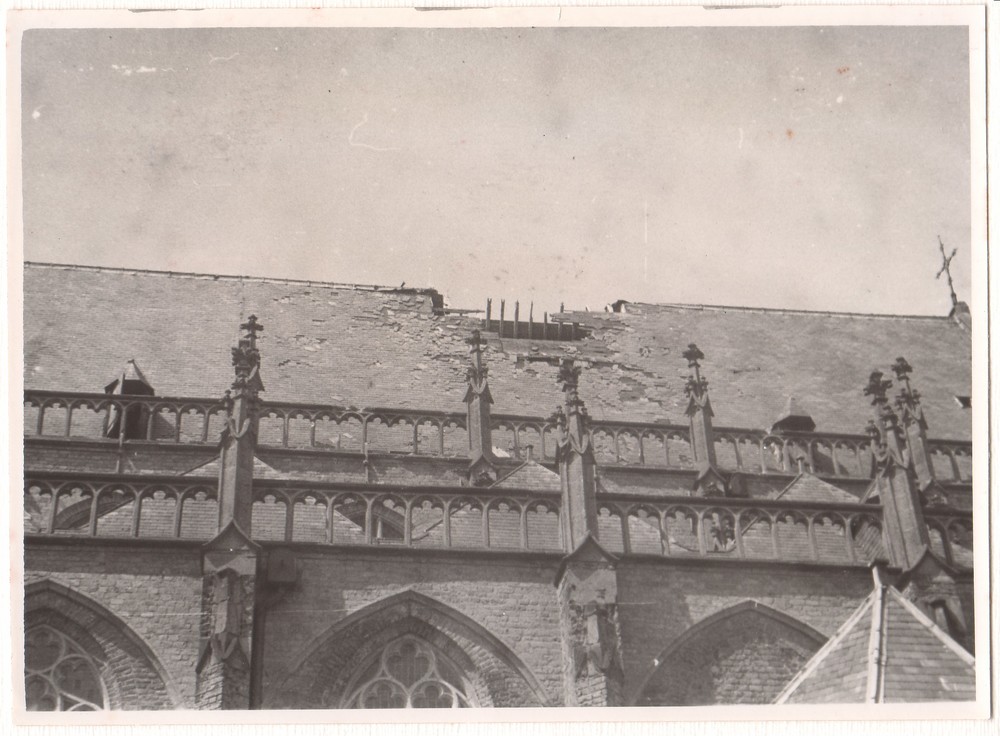 Beschadigde Sint Maartenskerk in de oorlog.