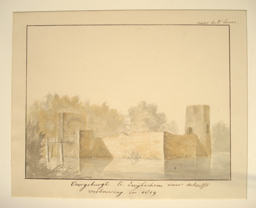 Gezicht op de ruïne van de voorburcht van het kastee...