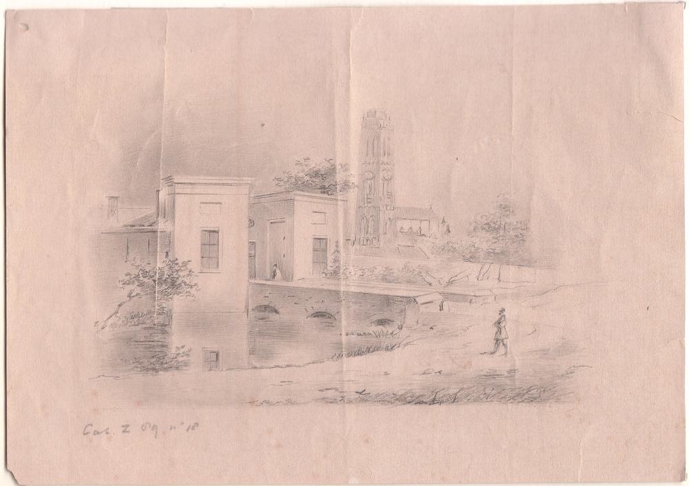Bosschepoort met brug, gracht en Sint Maartenskerk, ...