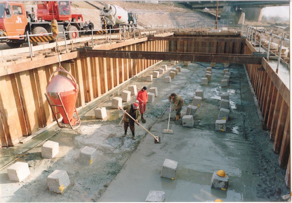 Bouw tuibrug bij Zaltbommel 1993
