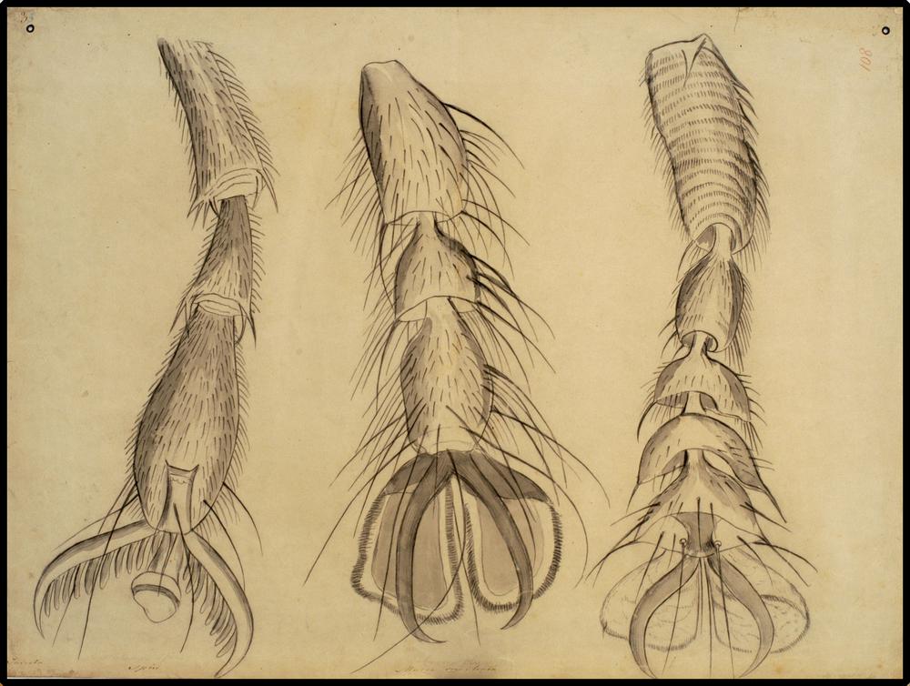 Kop van Hippobusca equi ; larve van Culex pipiens