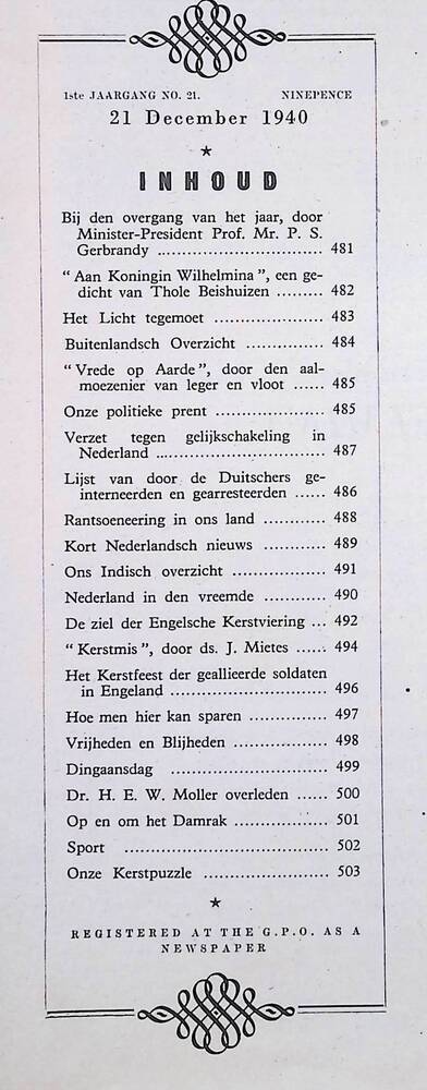 Vrij Nederland, Je Maintiendrai, kerstnummer, 1940