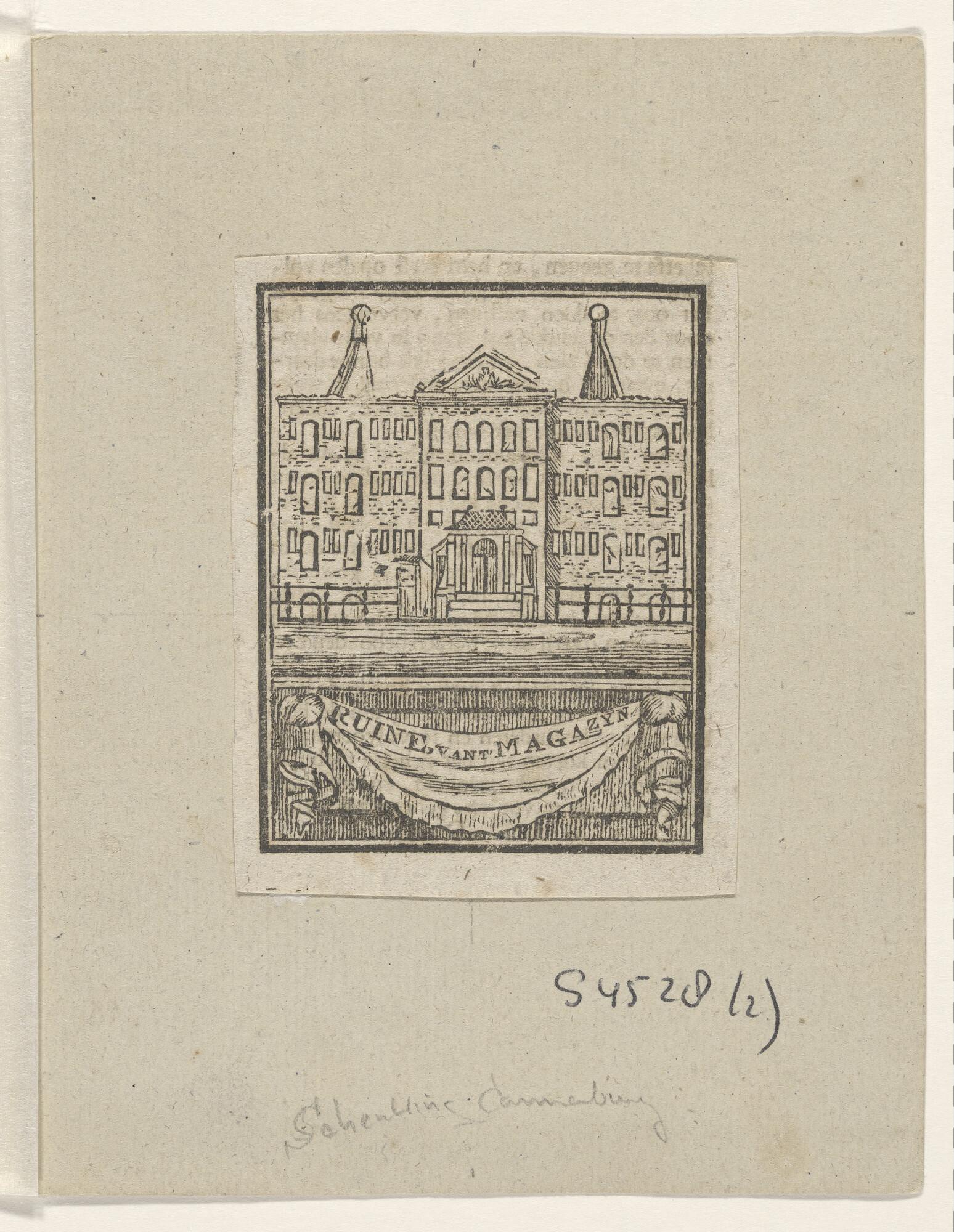 Afbeelding van 's Lands Zeemagazijn na de brand in 1791