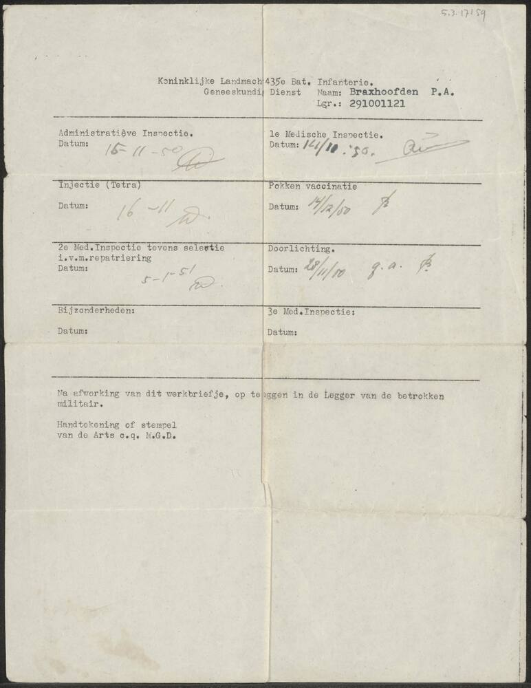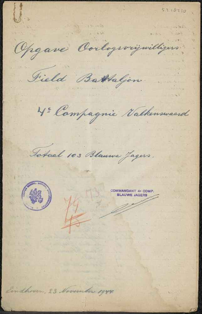 Opgave Oorlogsvrijwilligers Field Bataljon 4e Compag...