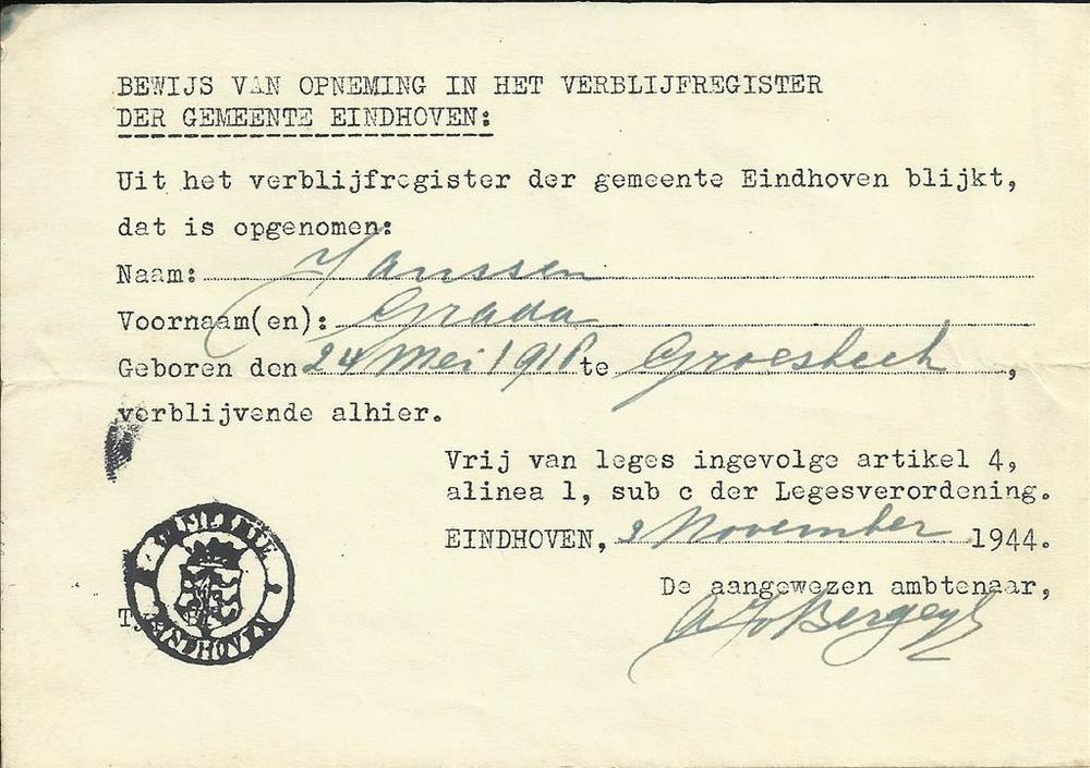 Bewijs van opneming in het Verblijfregister der geme...