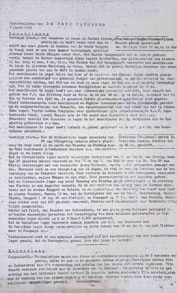 De Vrije Katheder ( Nieuws bulletin), 7 Maart 1945
