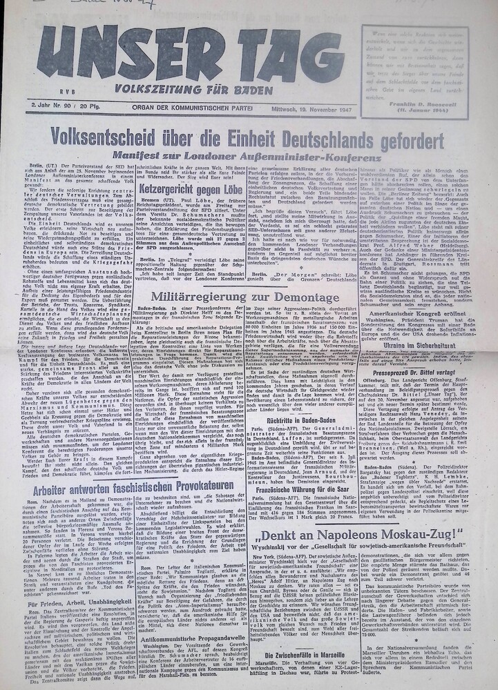 Unser Tag, 19 november 1947