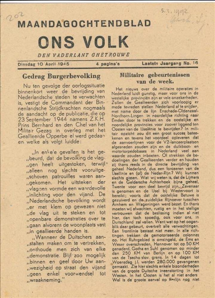 Krantenknipsel "De Tijd 11 mrt 42"