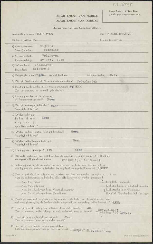 Aanmeldingsformulier oorlogsvrijwilliger Aanmeldings...
