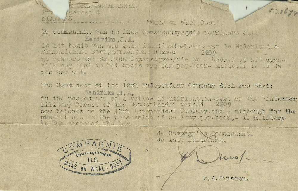 Verklaring dat J. Hendriks behoort tot de Gezagscomp...