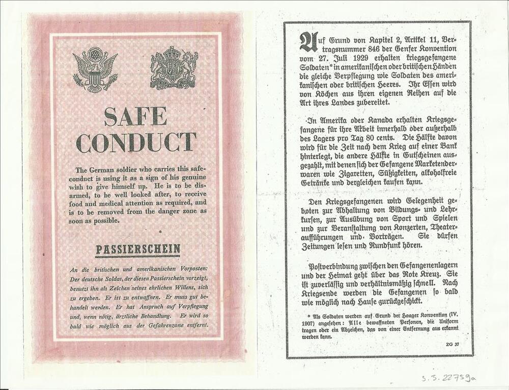 propaganda pamflet Duits/Engels 'Safe Conduct'