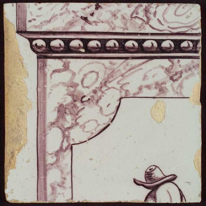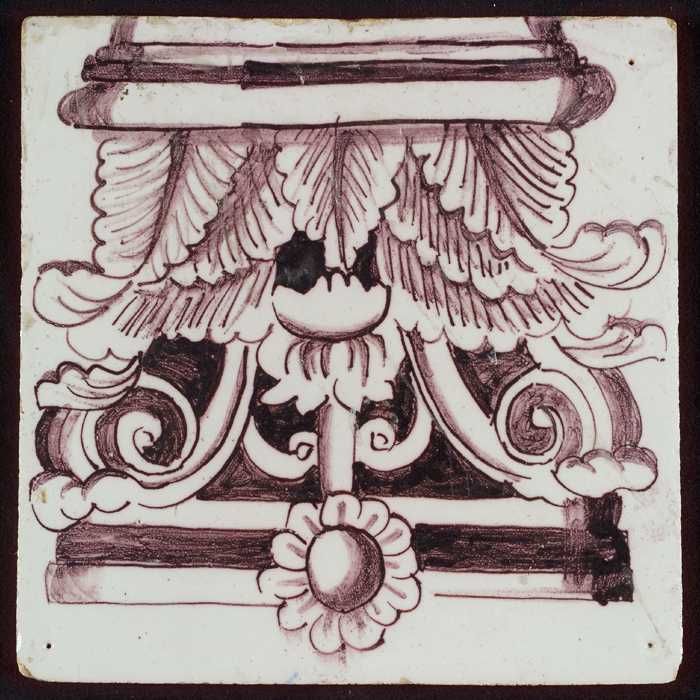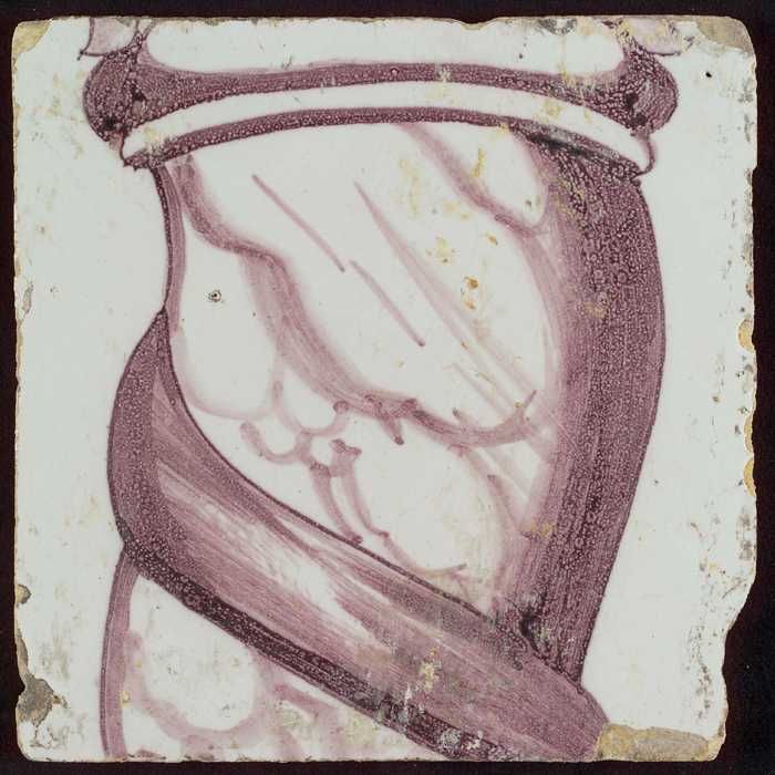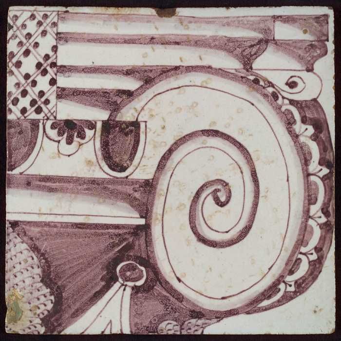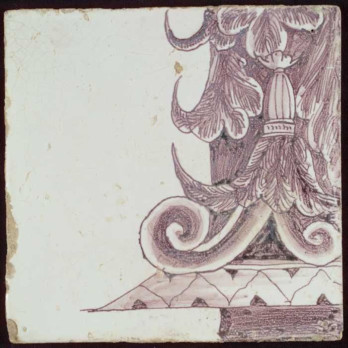 Rechtertegel van pilaster waarop deel van paarse voluut