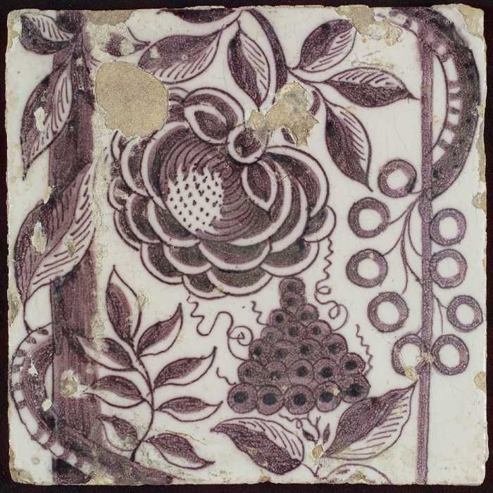 Paarse tegel van pilaster "Landzigt": onderdeel van ...