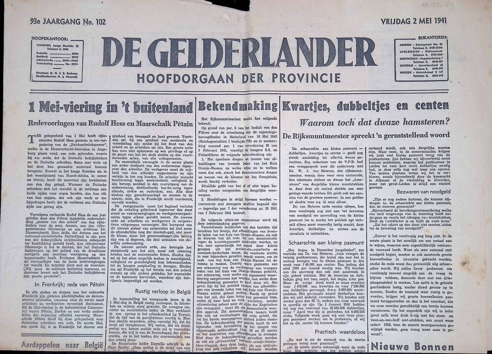 De Gelderlander. Hoofdorgaan der Provincie. 2 mei 1941.