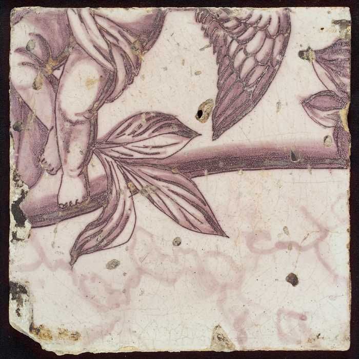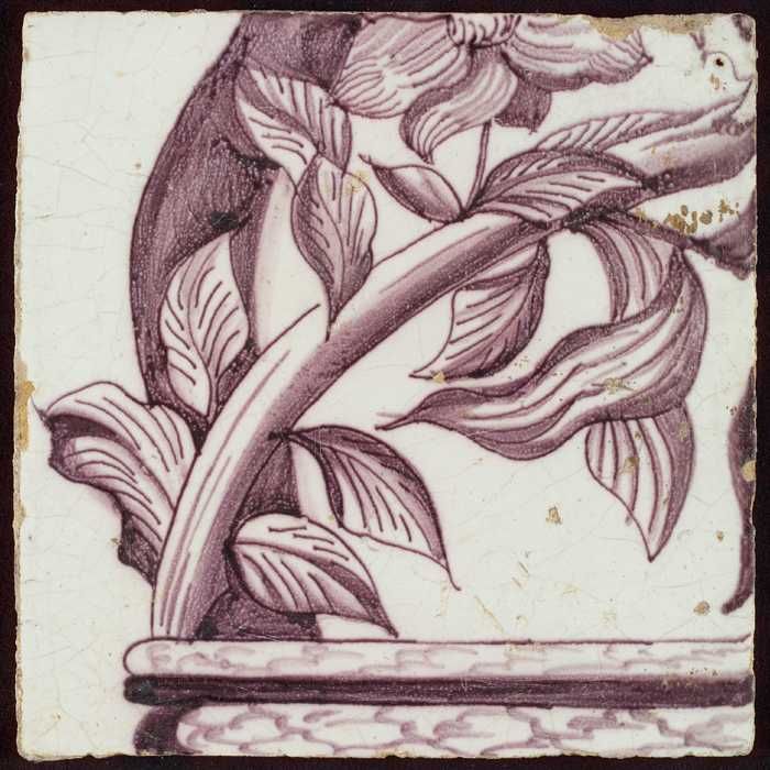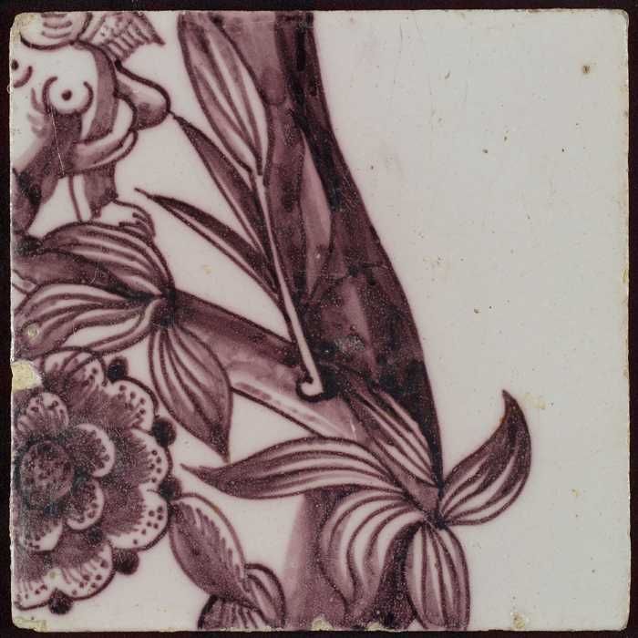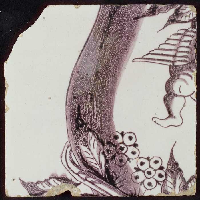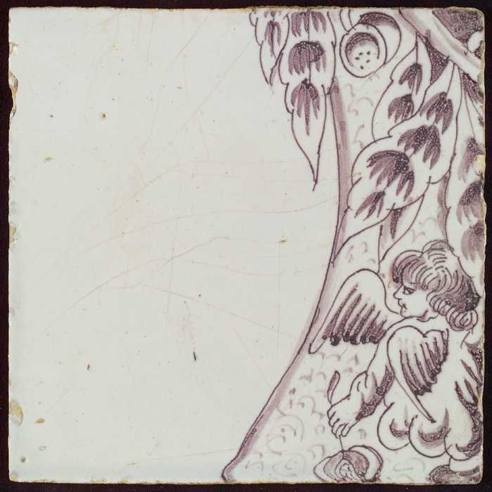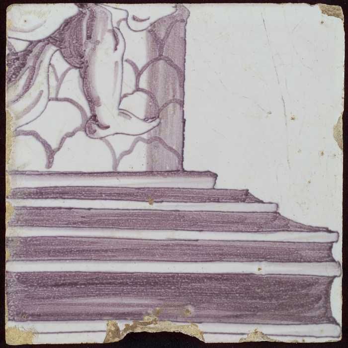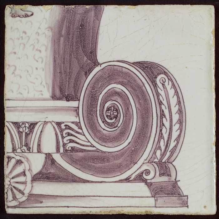 Tegel van pilaster met in paars deel van voluut