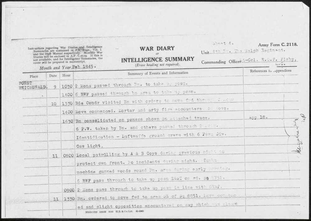 Oorlogsdagboek (War Diary) 4th Battalion, The Welch ...