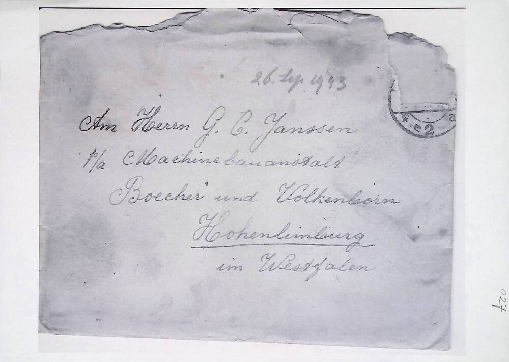 Brief in enveloppe. 10 april 1944. Aan den heer G.C....
