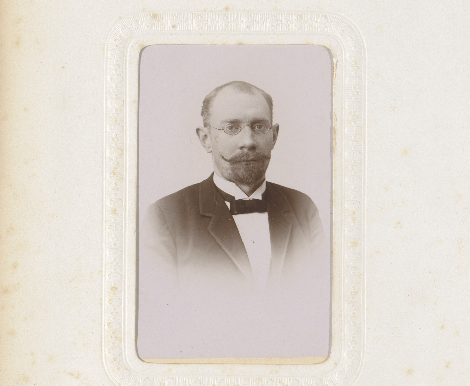 Portret van een man met snor, baard en bril