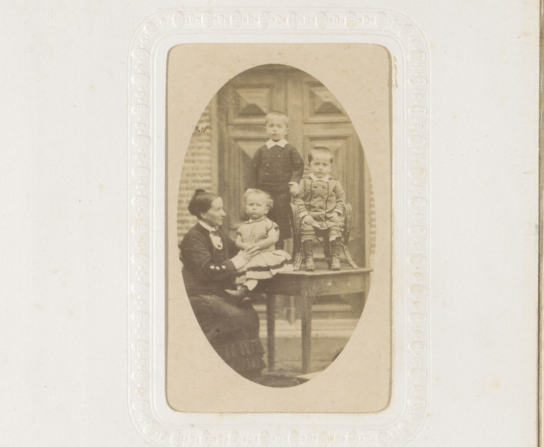 Portret van een vrouw en drie kinderen, de kinderen ...