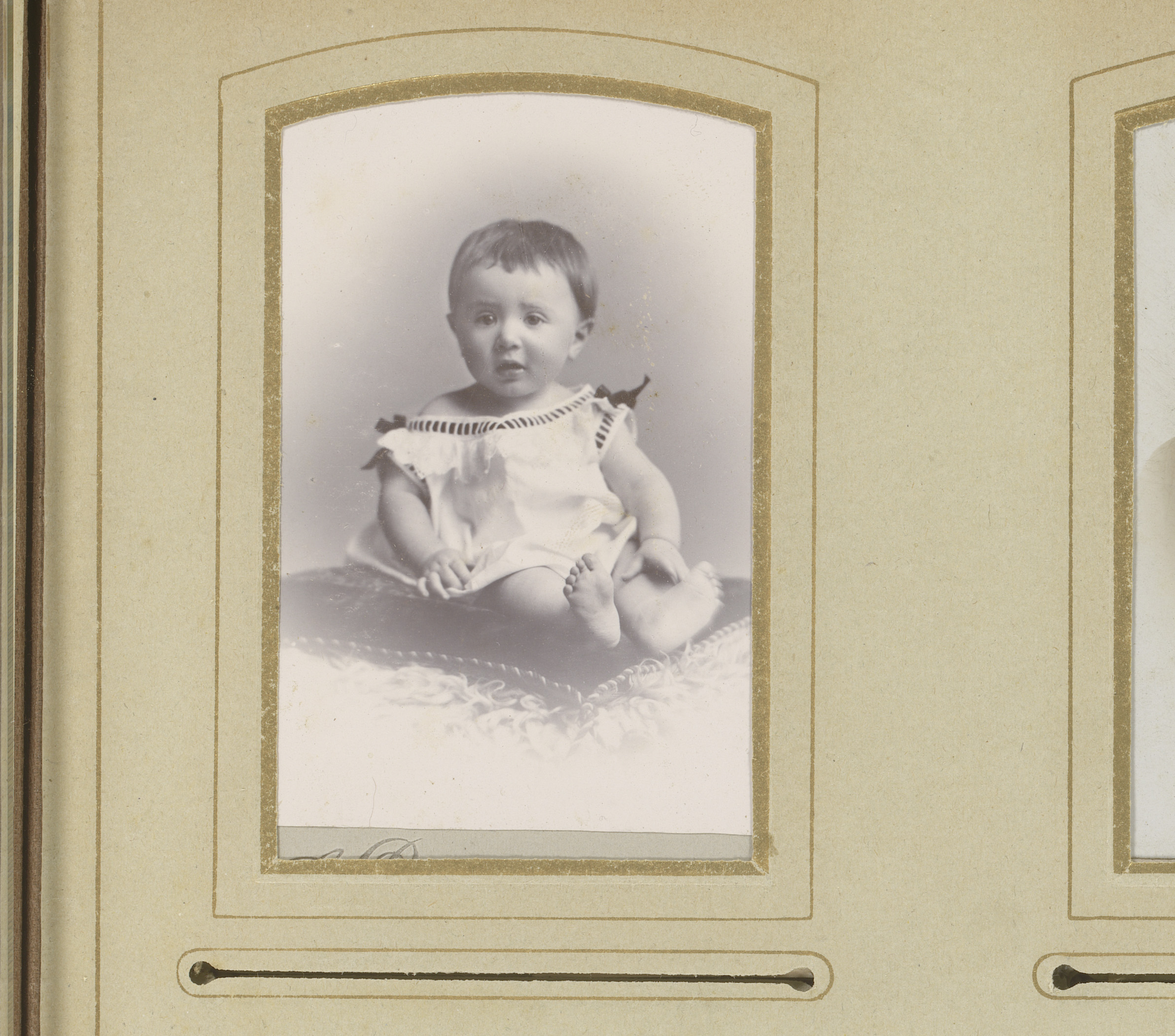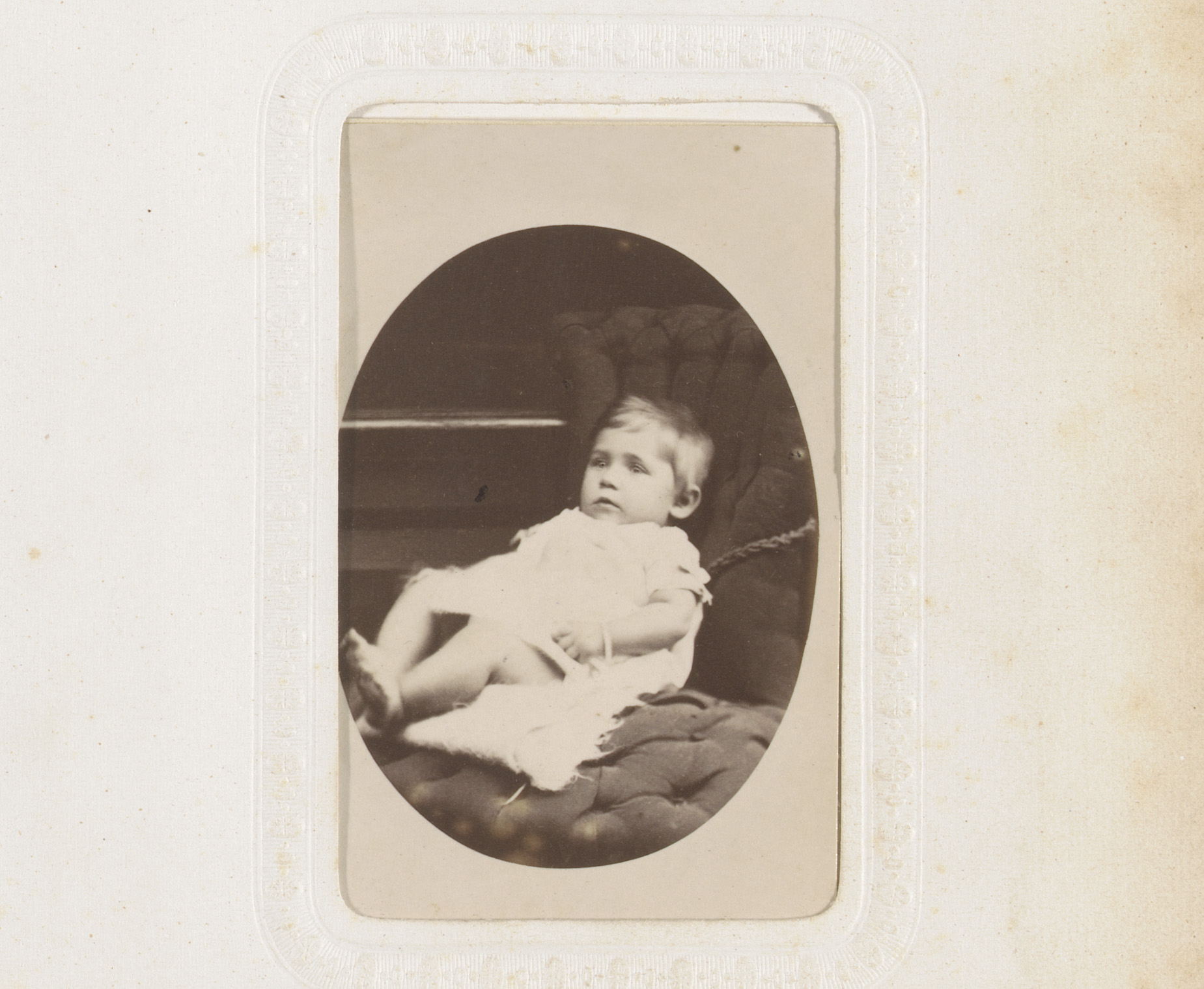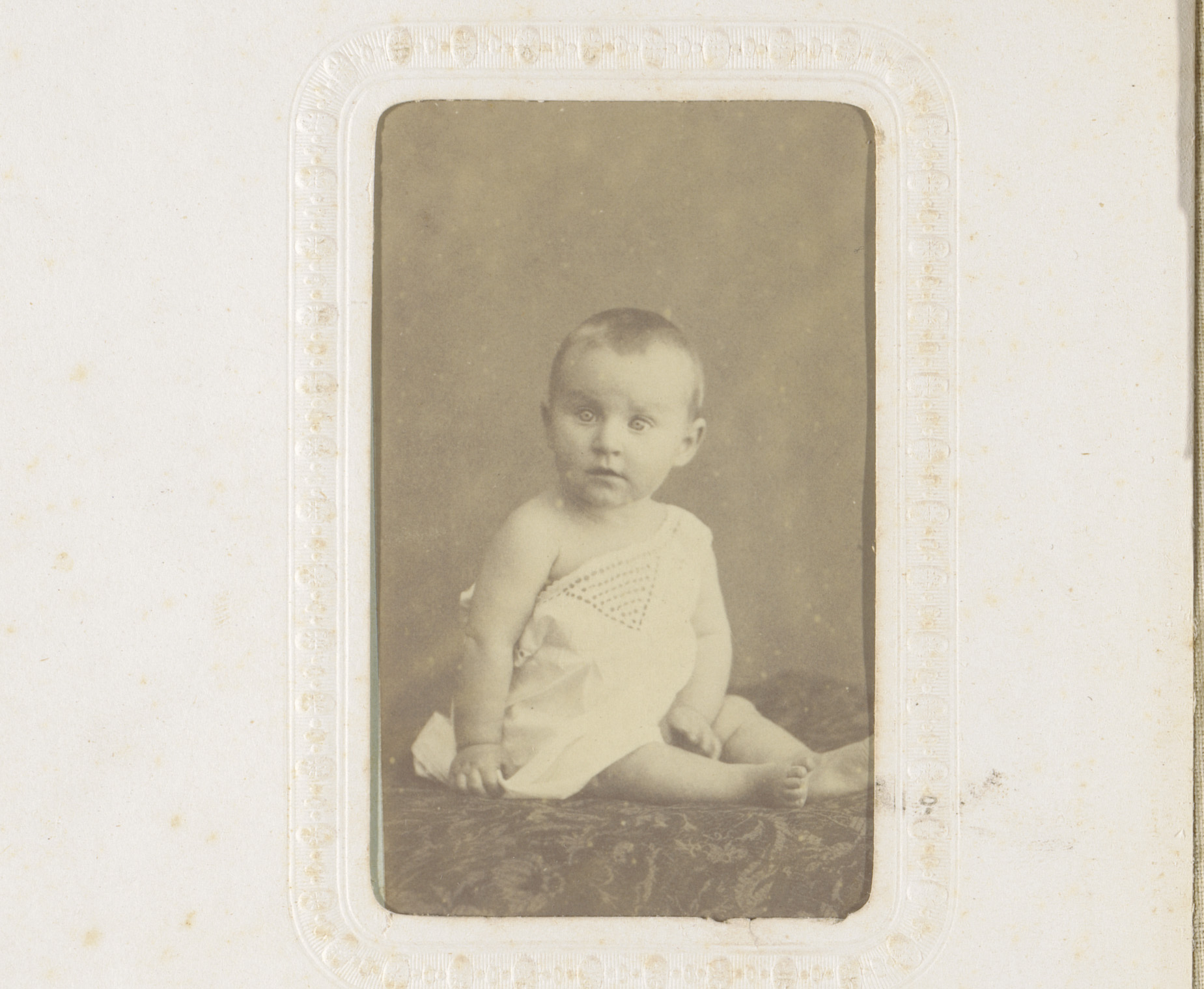 Portret van een zittende baby, aangeduid als Willem ...