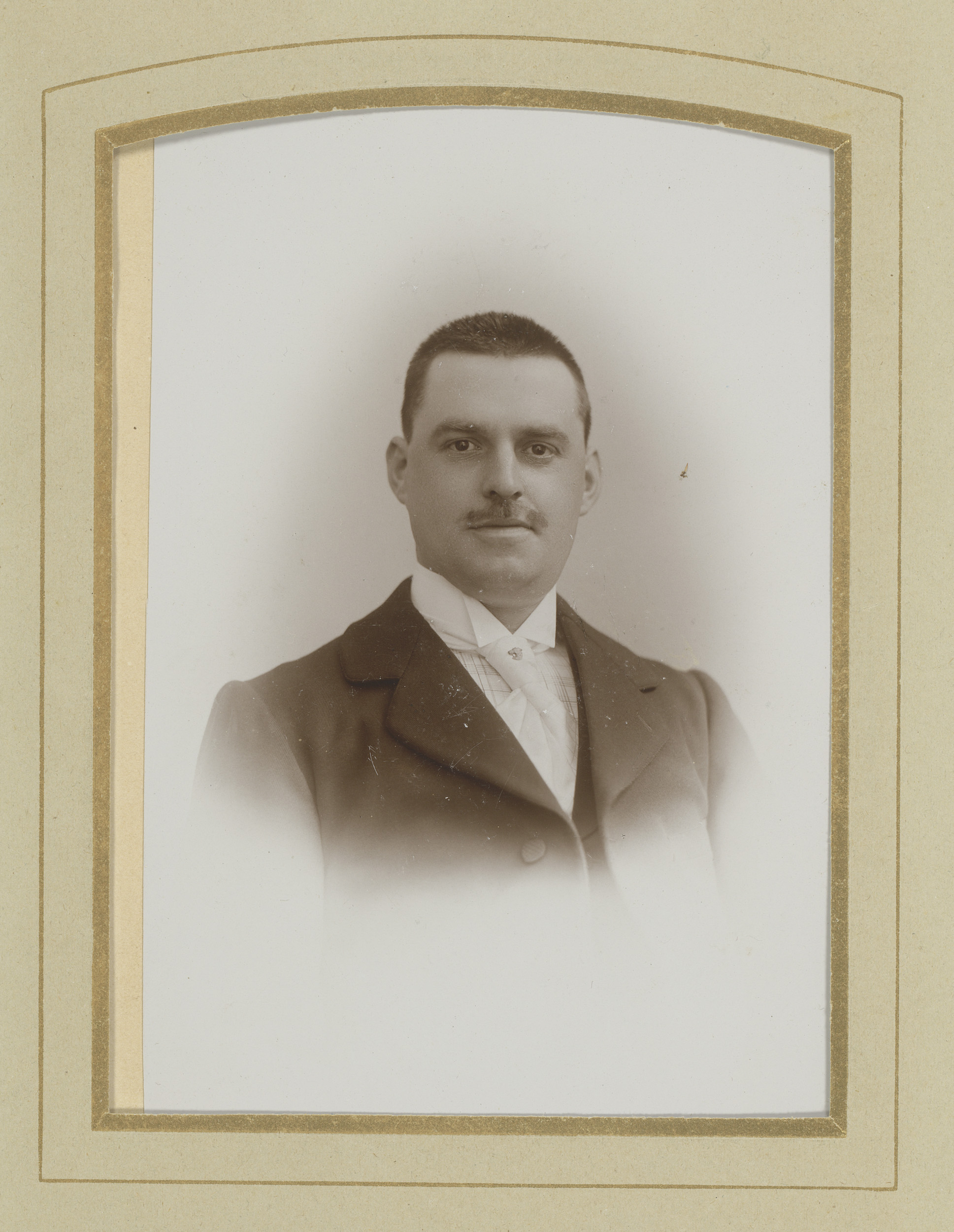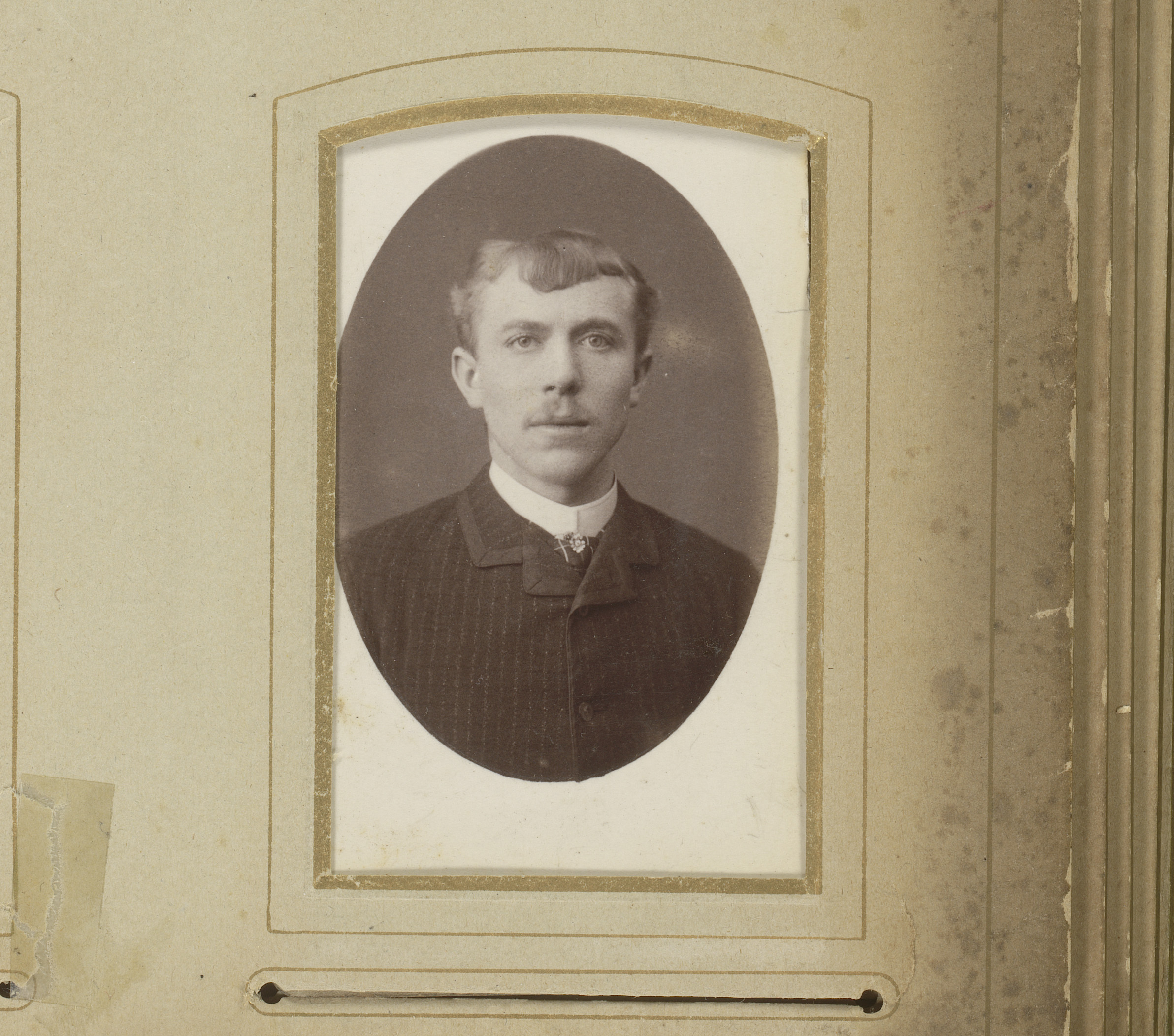 Portret van een jonge man met snor en sik