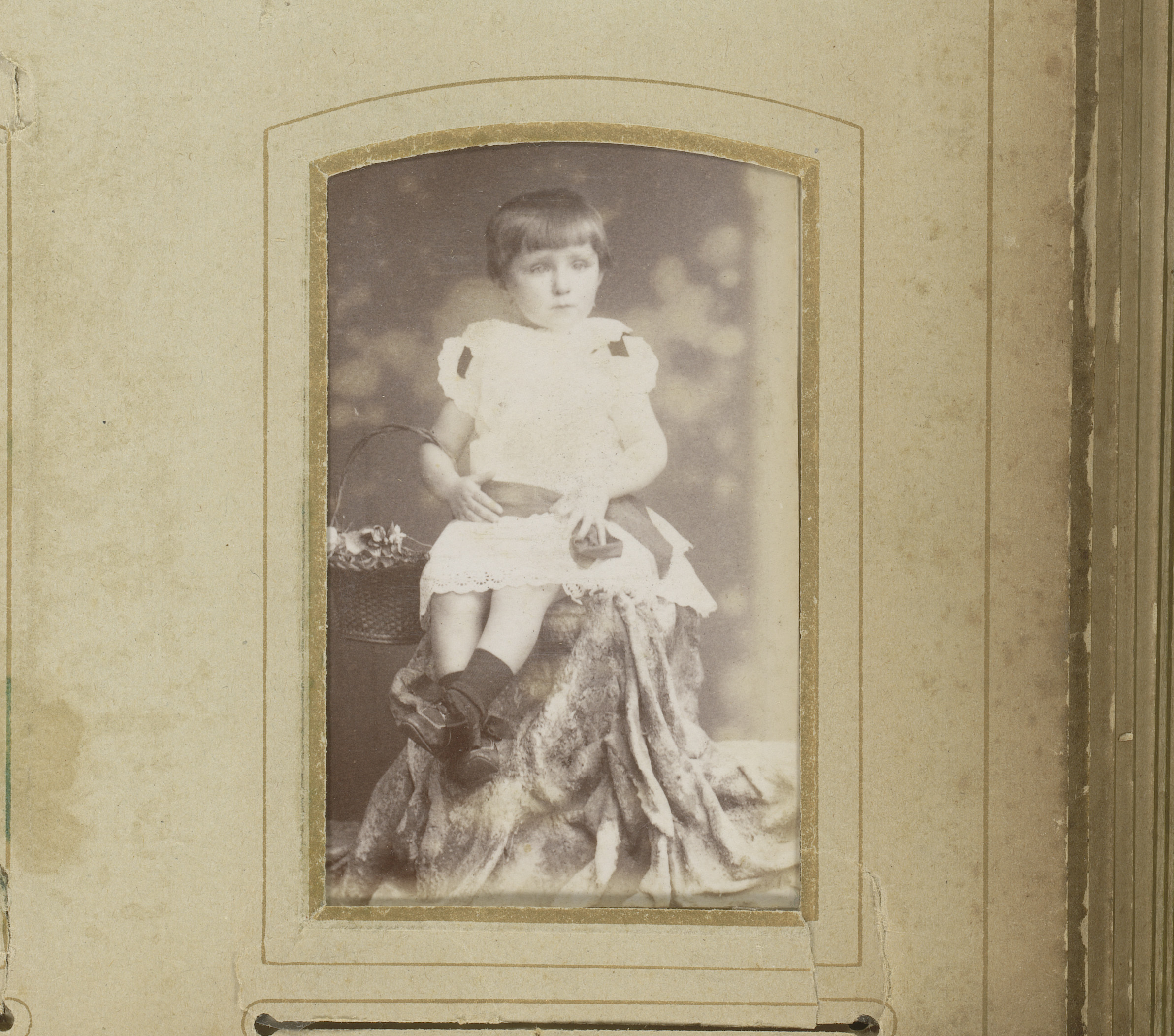 Portret van een meisje in witte jurk, staand bij een...