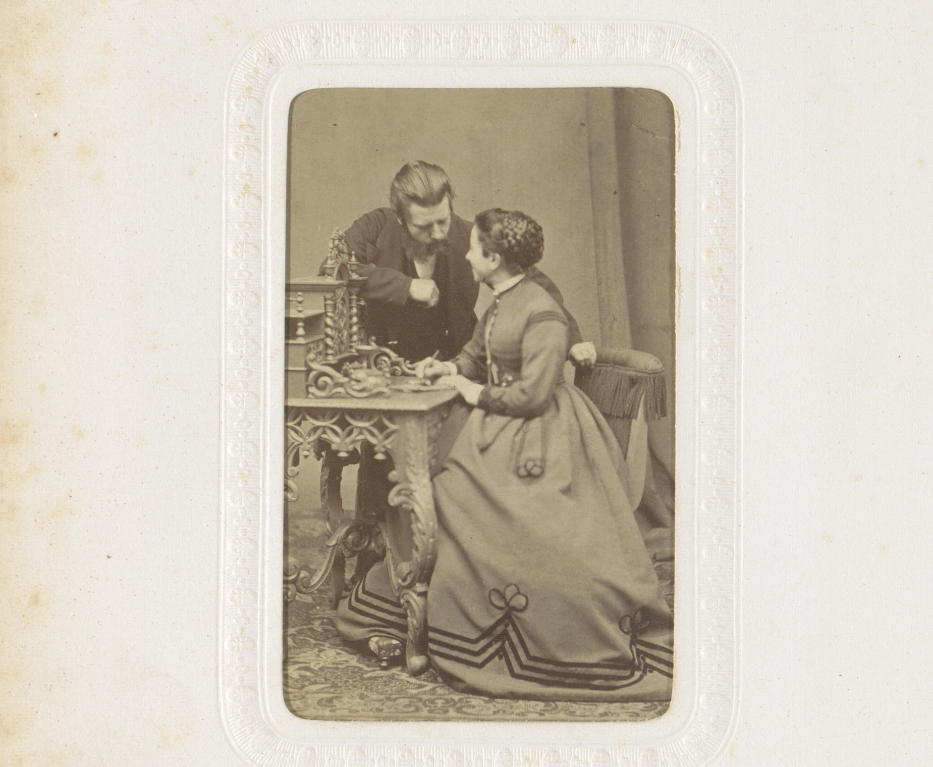 Portret van een man en een vrouw, de vrouw zittend a...