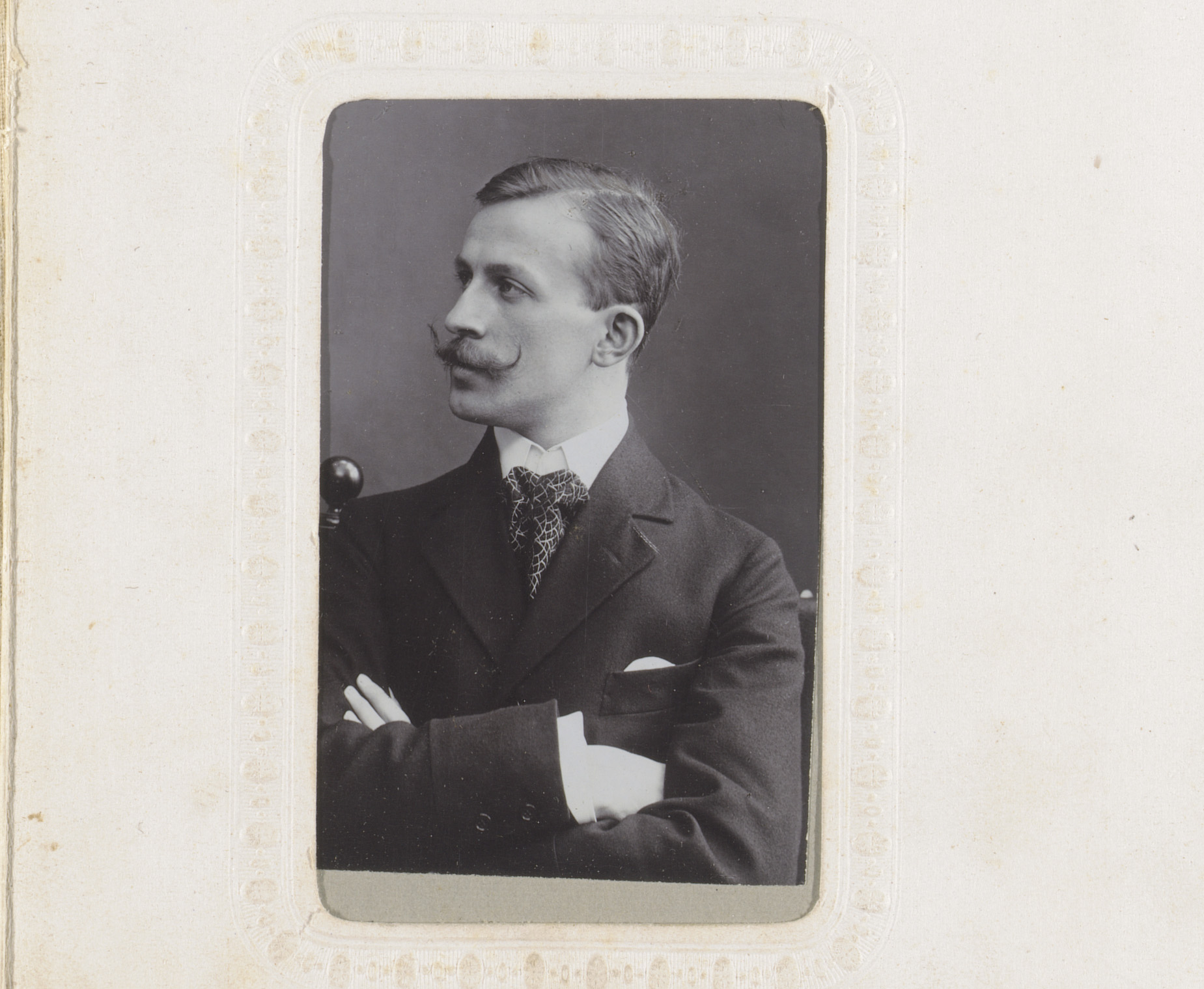 Portret van een zittende man met snor