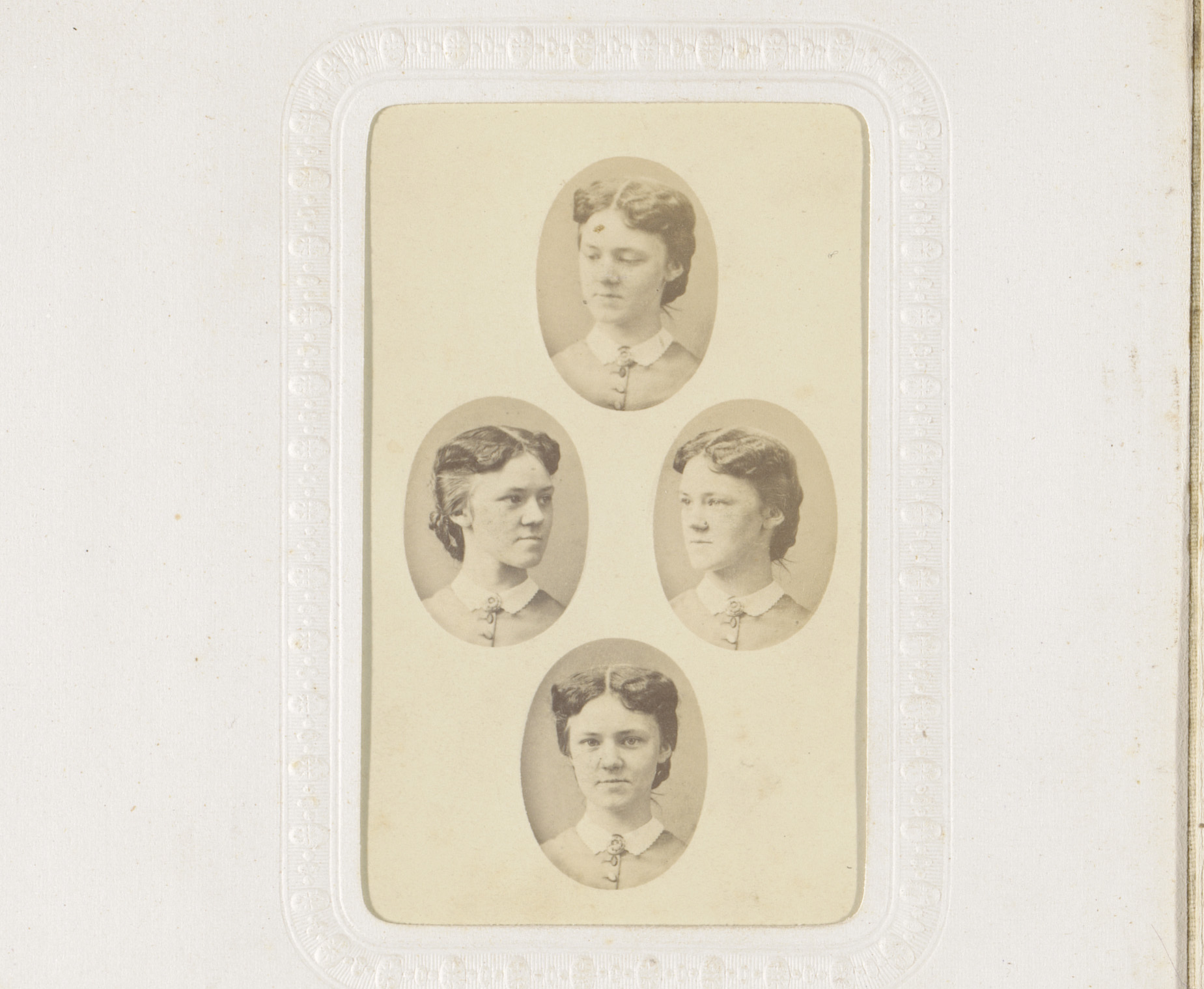 Montage van vier miniatuurportretten van jonge vrouw