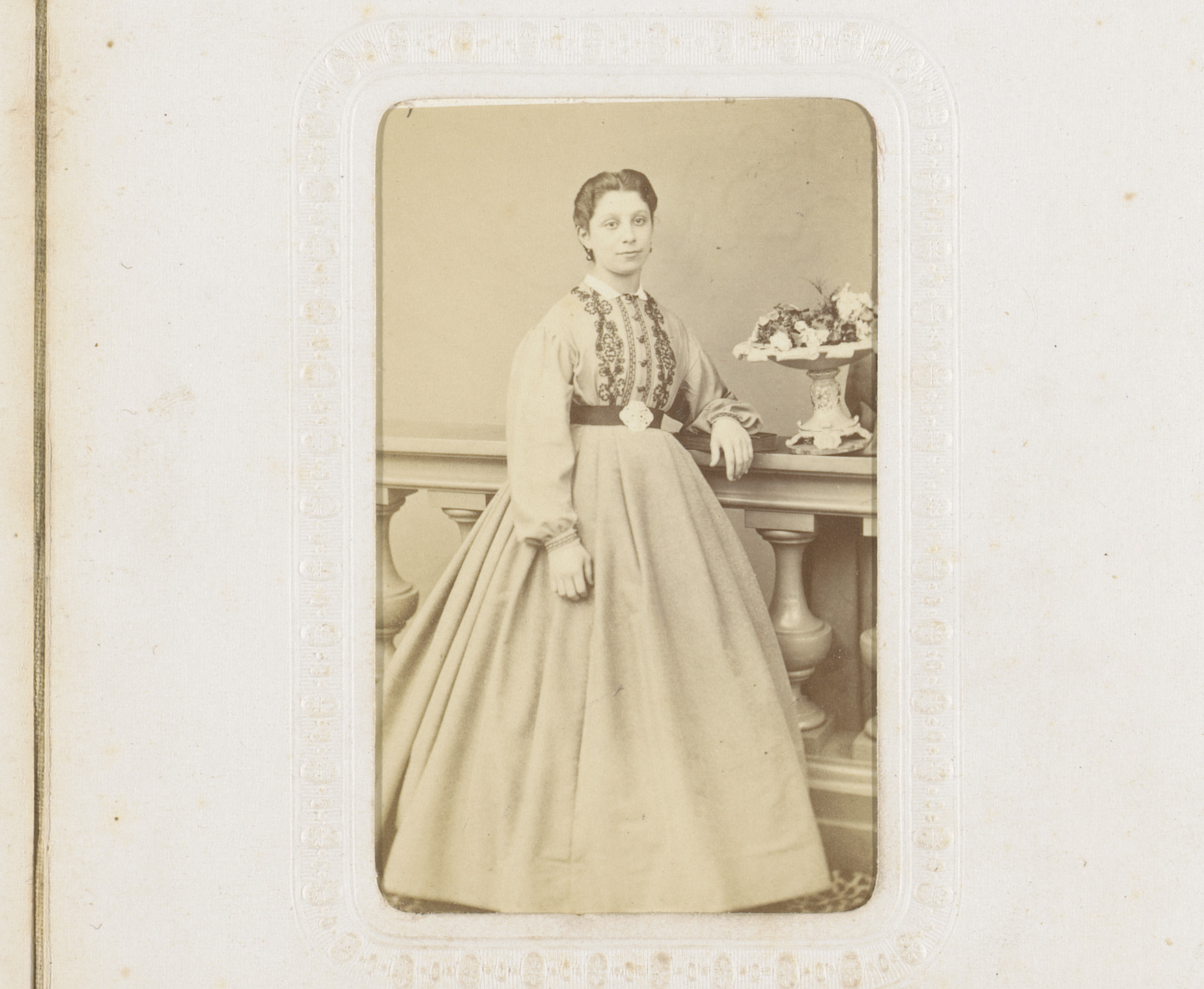 Portret van een vrouw, staand bij een balustrade