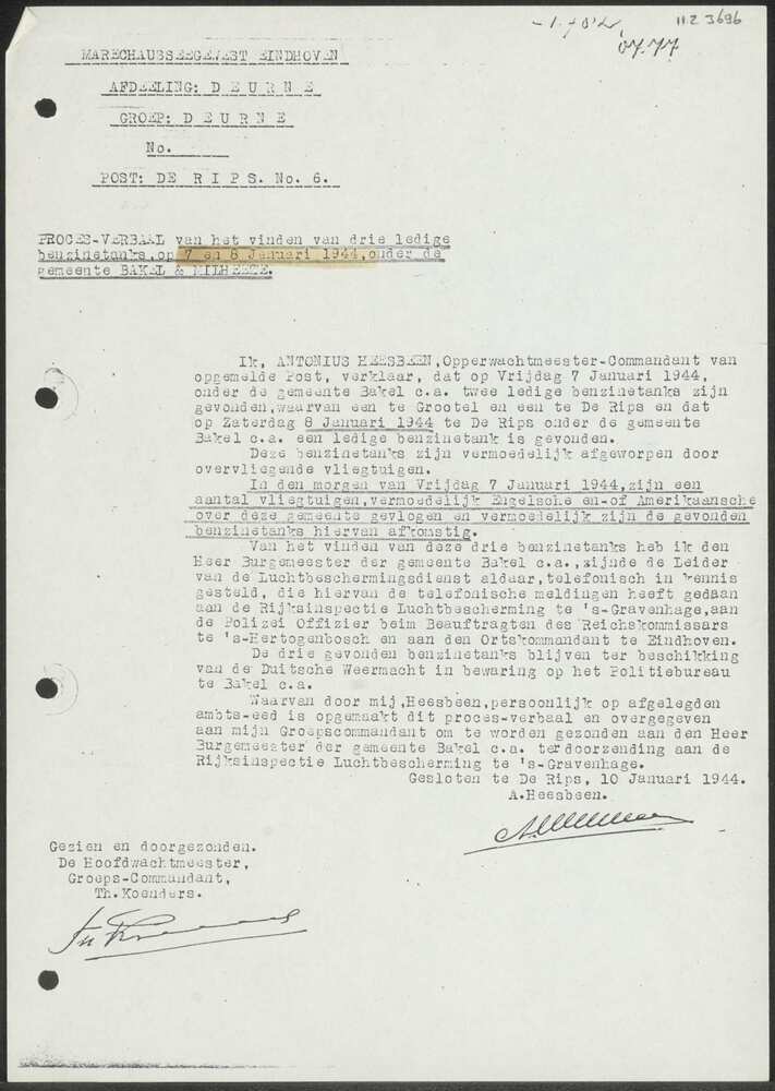 Proces-verbaal Marechaussee Eindhoven Afdeeling Deur...
