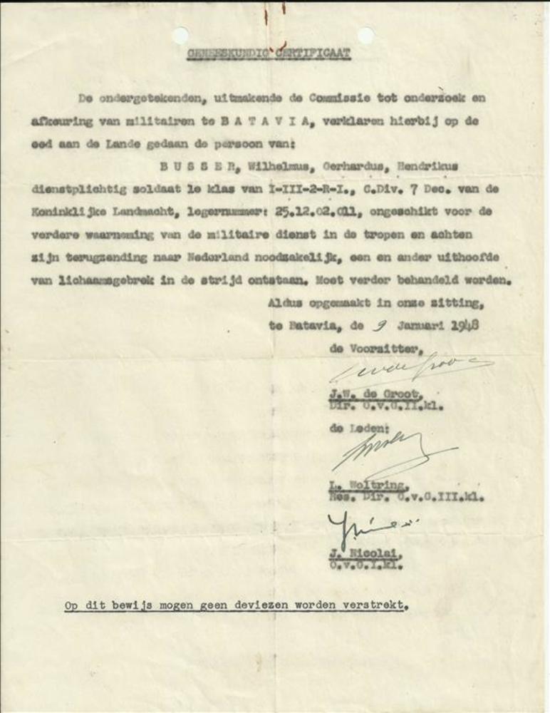 Geneeskundige certificaat - dhr Busser dienstplichti...