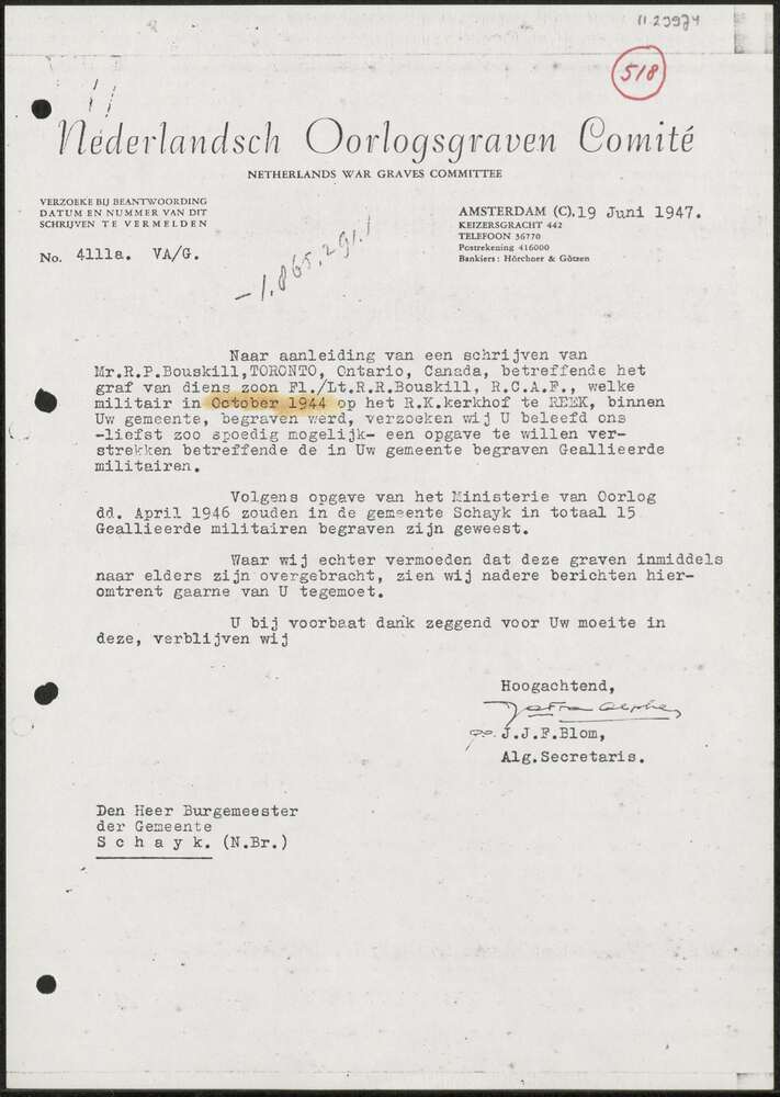 Brief, Nederlandse Oorlogsgraven Comité No. 4111a, 1...