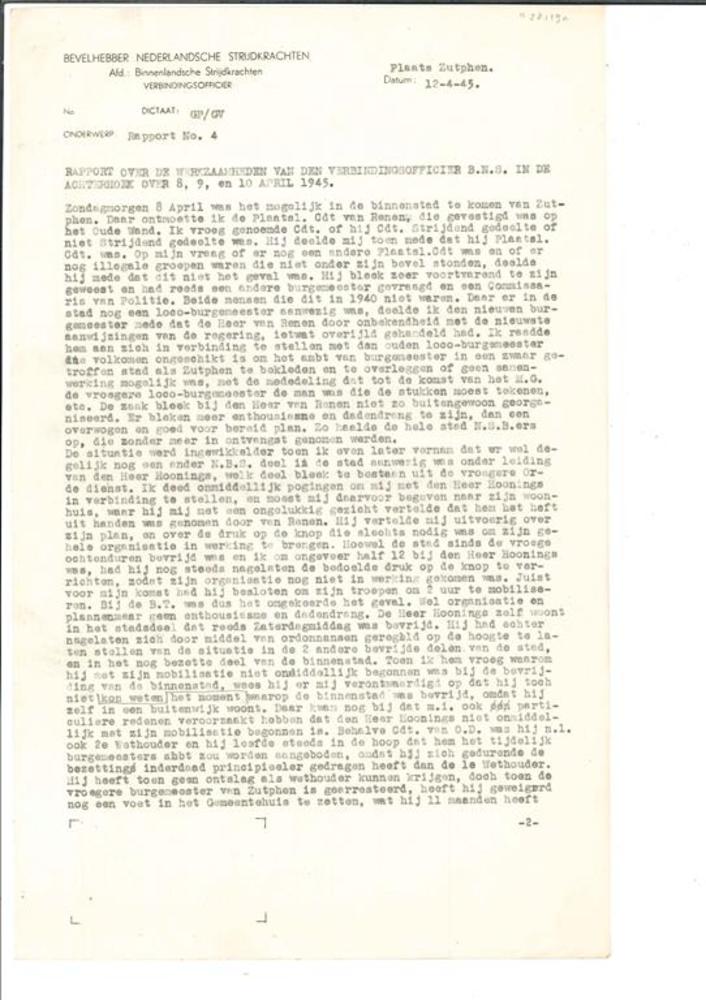 Rapport Nr. 4 over de werkzaamheden van den verbindi...
