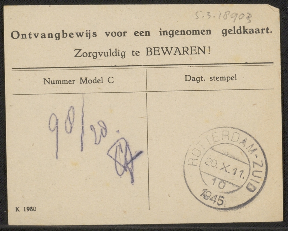 Omtvangstbewijs ingenomen geldkaart